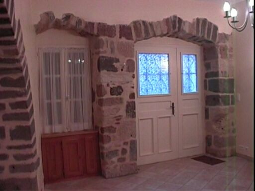 | Juste à côté de l'église, Michel et Marie-Agnès ont restauré une vieille maison, en mettant le plus possible en valeur les pierres existantes. Voici la porte d'entrée. |