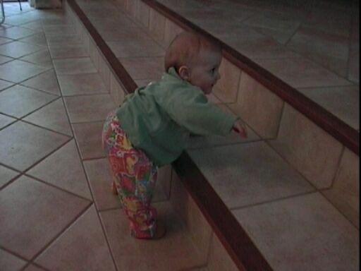 Ce qu'elle n'avait pas encore fait, c'était grimper les escaliers. Son cousin Thibaud les grimpait à l'âge de sept mois, mais je trouvais qu'il était un peu jeune pour ça et j'espérais que Daphné ne voudrait pas trop vite rattraper son « retard ».