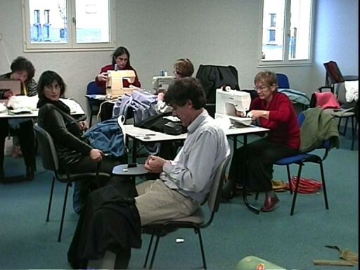 | Pratiquement tous les acteurs participent aux travaux de couture, aidés par quelques sympathisants. |