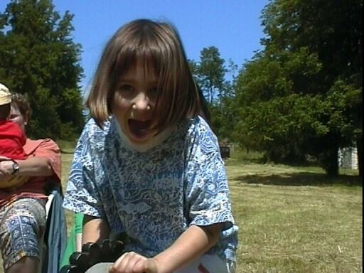 Anna s'en donne à coeur joie sur le cheval à bascule.