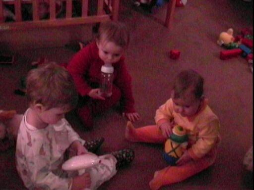 | Un trio pour notre plaisir, avec Ronan à la tour musicale, Élodie au biberon et Cassiopée au culbuto. Musique ! |