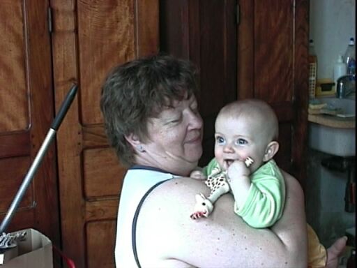 | Ne vous y trompez pas : ce n'est pas sa girafe qui fait tant sourire Daphné, mais le fait de recevoir autant d'affection. |