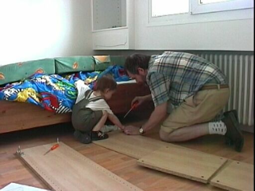 Montage d'une armoire dans la nouvelle chambre d'Élodie