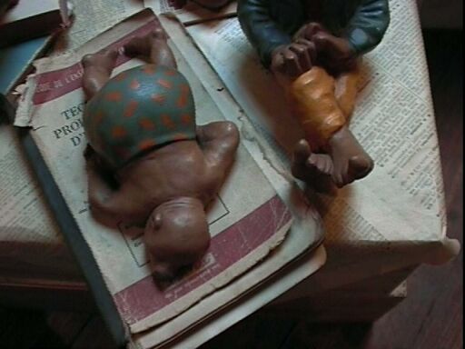 | A Pont-Scorff, dans une boutique d'artisanat, quelques rats de plâtre nous montrent le bon exemple. |
