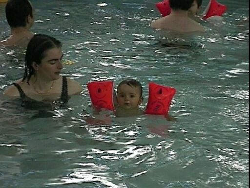 | Grâce aux flotteurs, les bébés peuvent évoluer tout seuls dans l'eau. |