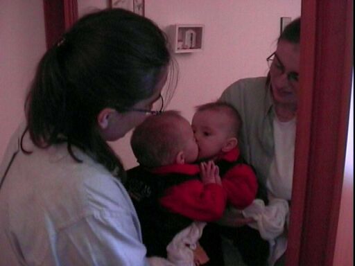| Un petit bisou (on ne sait jamais : des fois que le bébé du miroir serait comestible !) |
