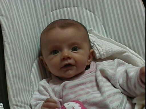 À 3 mois comme à 2 semaines, Élodie est curieuse de tout ce qui l'entoure.