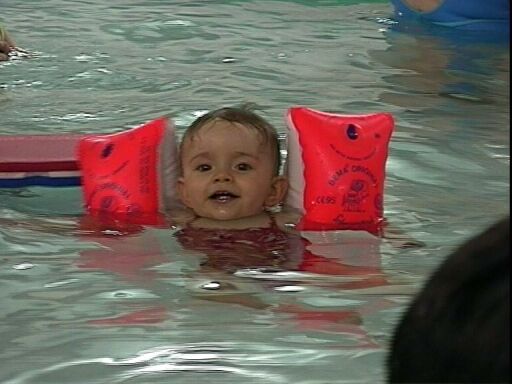 Un peu toute seule, avec les bouées.