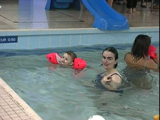 | Cinq mois avant la naissance de Daphné, Élodie aime toujours autant nager seule avec les bouées. Dès janvier prochain, elle ne voudra plus quitter les bras de maman ou papa. |