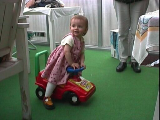 | Complètement réveillée à présent, Élodie conduit sa petite voiture. |