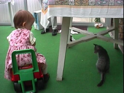 | Devant l'oeil interrogateur de Kiwi, elle arrive même à faire de la marche avant pour la première fois. |