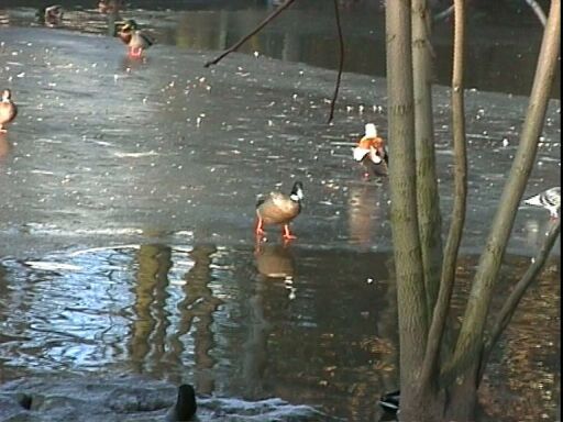| C'est encore l'hiver, et les canards passent autant de temps sur la glace que dans l'eau. |