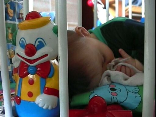 | J'aime beaucoup cette image du clown-culbuto qui veille sur le sommeil d'Élodie. |