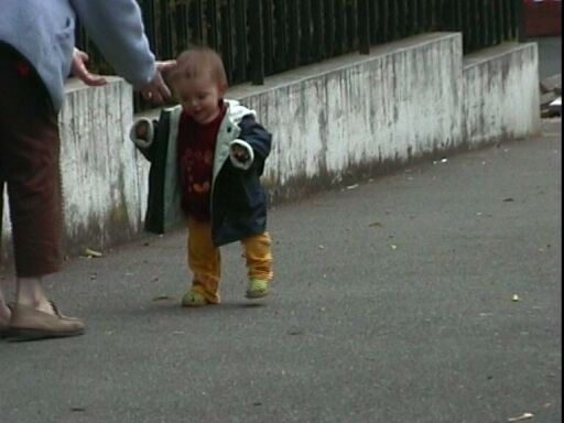 | Le trottoir a beau être en pente, cela ne gêne pas notre marcheuse. |