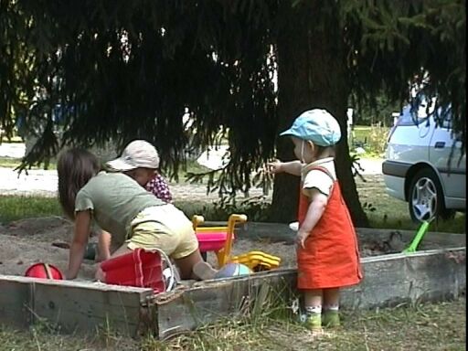 | Pas encore habituée à marcher dans le sable, Élodie préfère rester à l'extérieur, sur la terre ferme. |
