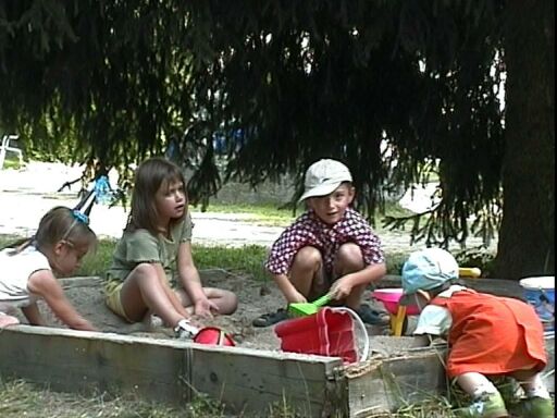 | D'ailleurs, d'où elle est, elle peut jouer avec le sable tout autant que la cousine Camille et les petits voisins. |