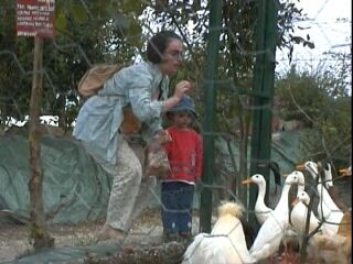 Sur la droite, malgré leur cou allongé, ce sont bien des canards. En revanche je n'ai pas su identifier ce curieux animal qui se tient sur deux pattes et qui, contrairement au kangourou, porte sa poche dans le dos.