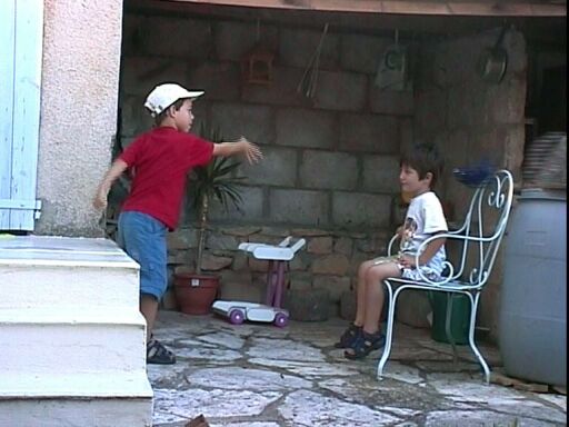 Hugo et Maël jouent au jeu des « cascous » dans lequel il faut viser une CASquette avec un COUSsin