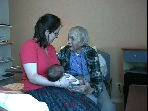 | Le choc des générations : super papy découvre son arrière-petite-fille, née plus de 100 ans après lui. |