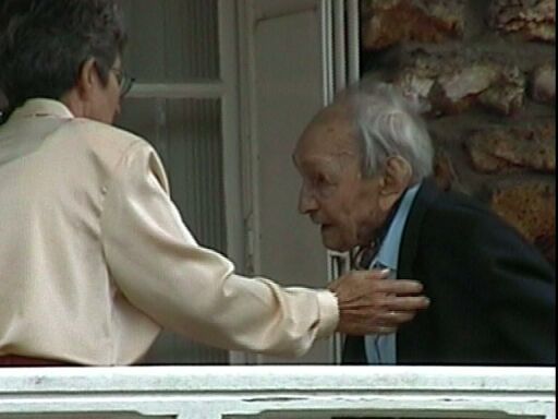 | Françoise accueille son papa, qui n'a pas besoin de fauteuil roulant pour les derniers mètres. |