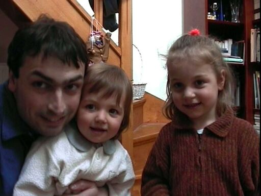 | Xavier, Romane et Camille se découvrent sur l'écran du caméscope. |