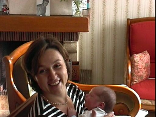 | Pendant ce temps, Thibaud passe de bras en bras. Ici ceux de sa maman... |
