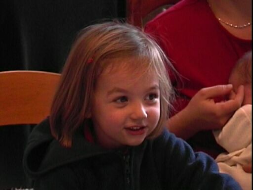 | Avec beaucoup de délicatesse, Romane chante en anglais : « Halbay baythday to you ! » |