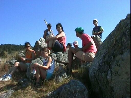 | Arrivés en haut de la montagne, la pause casse-croûte est bienvenue avant de repartir. |